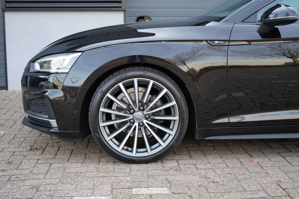 De prachtige lijnen van de A5 benadrukken het sportieve uiterlijk. Dit in combinatie met de 19 inch wielen en het S-line pakket zorgen ervoor dat het geheel een sportieve uitstraling biedt.